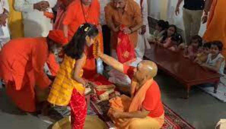 कन्या पूजन अनुष्ठान में मंगलवार सुबह मुख्यमंत्री ने मठ के प्रथम तल पर स्थित भोजन कक्ष में श्रद्धाभाव से परंपरागत रूप से पीतल के परात में, चांदी के लोटे में भरे जल से नौ कुंवारी कन्याओं के बारी-बारी पांव धोये। उनके मस्तक पर रोली, चंदन, दही, अक्षत, दूर्वा का तिलक लगाया। चुनरी ओढ़ाकर, उपहार एवं दक्षिणा प्रदान कर आशीर्वाद लिया। आरती उतारी।