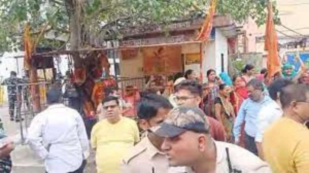 मंदिर के ढांचे तोड़ने की सूचना मिलते ही जुटे हिंदू संगठन