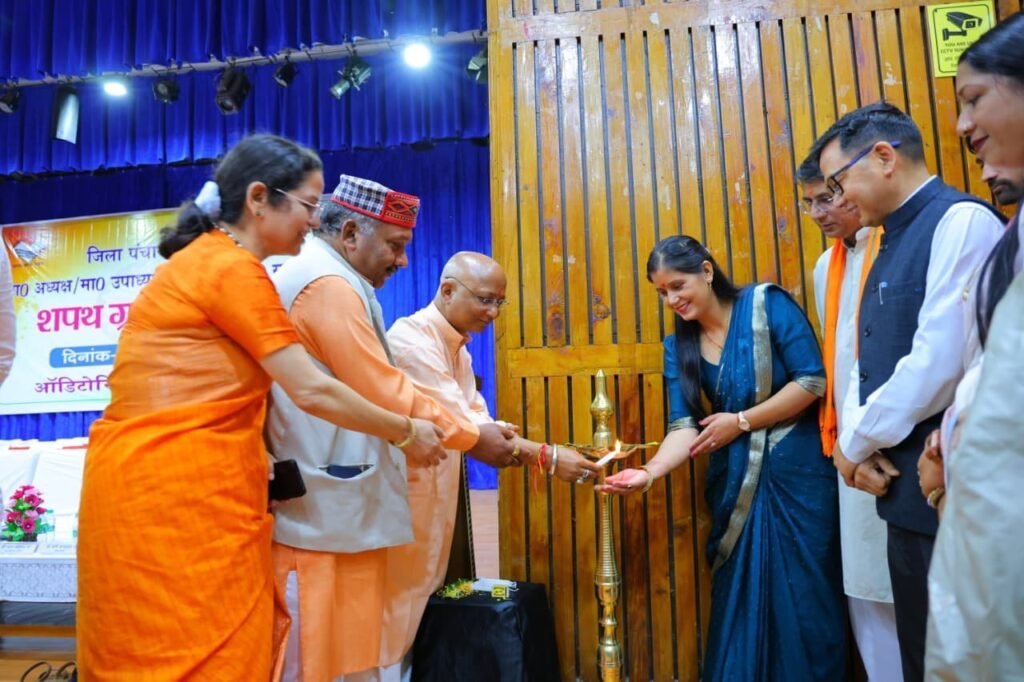 पौड़ी-  सोमवार को प्रेक्षागृह पौड़ी में आयोजित शपथ ग्रहण समारोह में जिला पंचायत अध्यक्ष, उपाध्यक्ष और सभी नवनिर्वाचित सदस्यों ने शपथ ली। इस अवसर पर अपर जिलाधिकारी अनिल सिंह गर्ब्याल ने जिला पंचायत अध्यक्ष एवं उपाध्यक्ष को शपथ दिलायी, जबकि सदस्यगणों को शपथ अध्यक्ष ने दिलायी। प्रदेश के मुख्यमंत्री पुष्कर सिंह धामी द्वारा जिला पंचायत अध्यक्ष, उपाध्यक्ष और सदस्यगणों को बधाई संदेश भेजा गया था।
